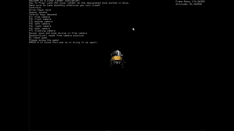 3D C++ game that utilizes openFrameworks to render a 3D mesh and lunar lander object. The player is able to control the lunar lander's horizontal and vertical movement. Thrusters on the lunar lander will allow it to move. Physics are applied to the particles from the thrusters. Collision detection is implemented using an Octree data structure.