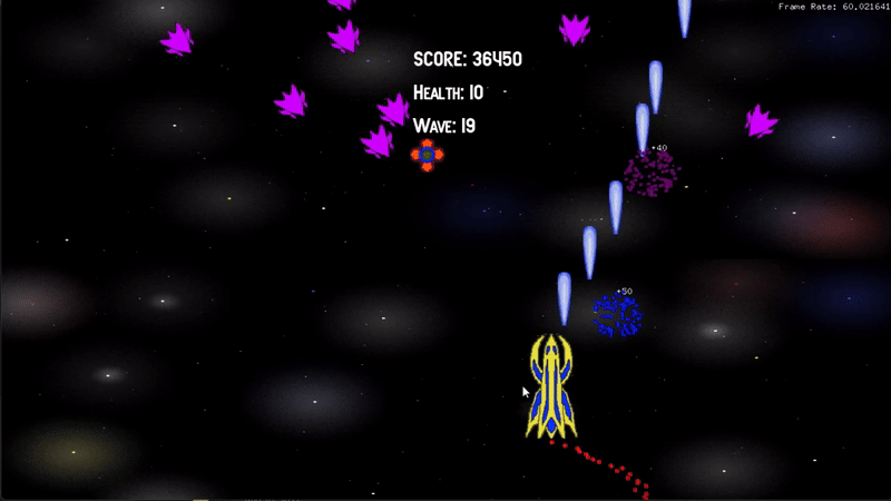 2D C++ game where a user controls a spaceship that can shoot lasers and enemies. The game is built using openFrameworks and includes particles, sprites and collision detection. Physics and linear algebra is used to calculate the movements and collisions in the game.